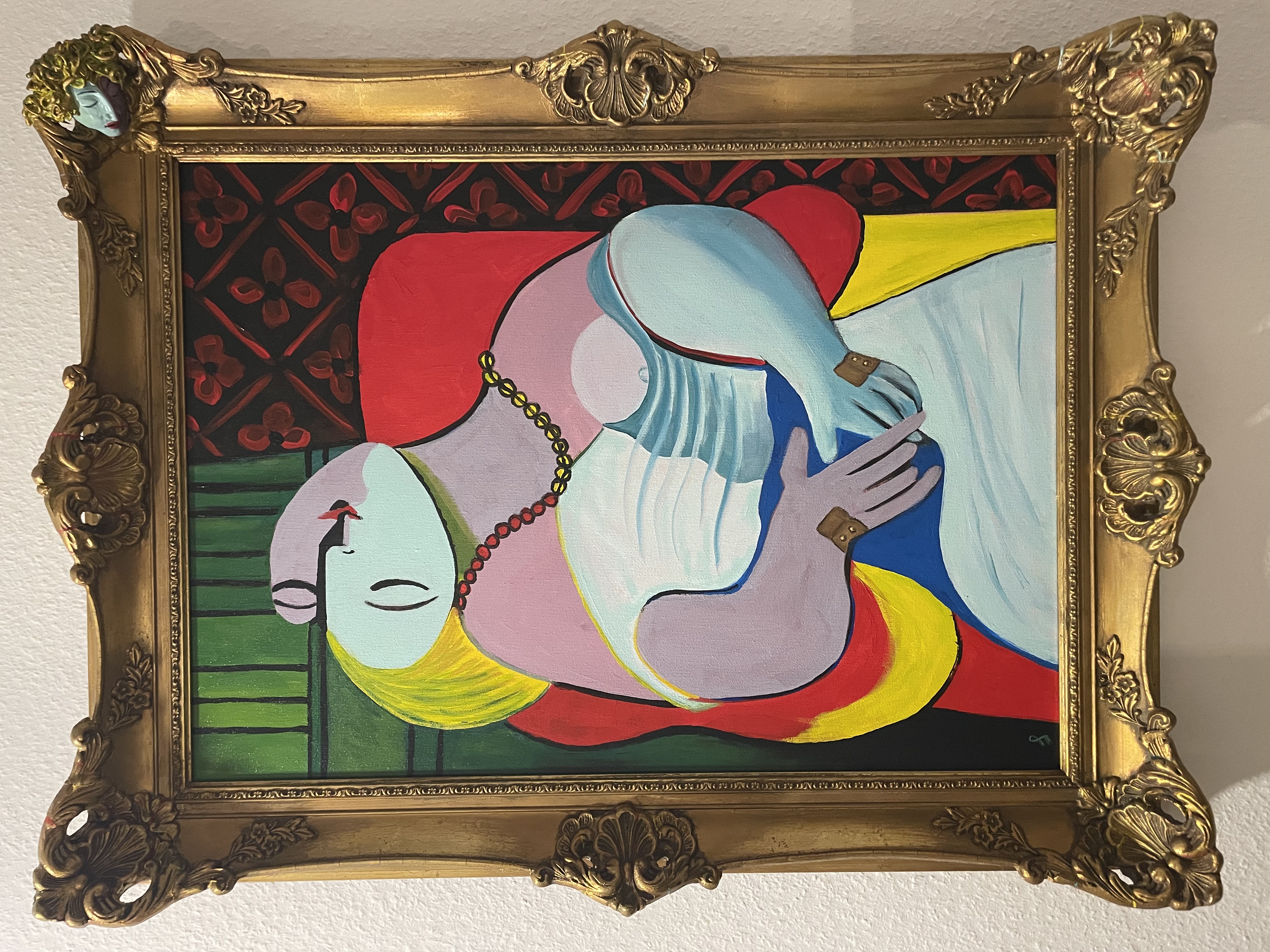 Acryl auf Leinwand – Abwandlung von Picassos Le Rêve – Barockrahmen mit modelliertem Kopf